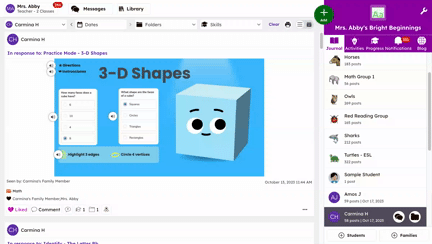 Lo que más me gusta de mi experiencia con Seesaw es que puedo seguir el crecimiento de mis alumnos y ver su progreso. También disfruto brindándoles retroalimentación e interactuando con ellos. Es un portafolio digital increíble donde los profesores pueden destacar el mejor trabajo de los alumnos y compartirlo con los padres. La comunicación con los padres en nuestra escuela ha mejorado muchísimo con la herramienta de mensajes.
