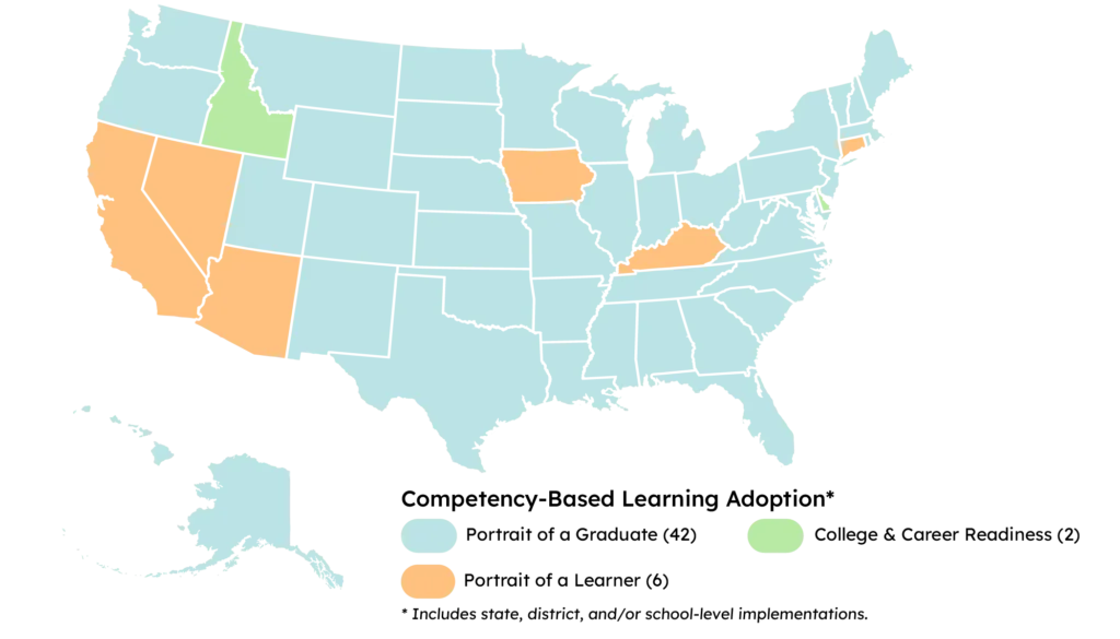 The US is actively implementing competency-based learning across states, with these programs referred to by various names, including: